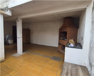 Casa térrea com 2 dormitórios, escritório, sala, cozinha, banheiro, lavanderia. No fundo tem quintal amplo com área gourmet, churrasqueira e banheiro. Parte superior da área gourmet tem salão de 35m² com banheiro. 2 vagas para carros.