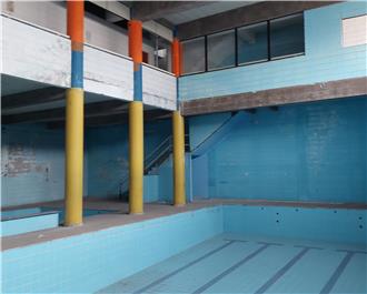 Prédio comercial 3 pavimentos: vestiários, escritórios, 2 piscinas desativadas, estacionamento na frente para 5 carros Ótima para academia ou colegio