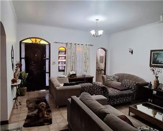 A casa térrea contém 3 dormitórios, sala 3 ambientes, cozinha, banheiro social, lavabo, edícula no fundo com 2 salões, banheiro e escritório. Vaga para 3 carros, quintal grande