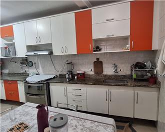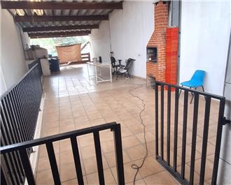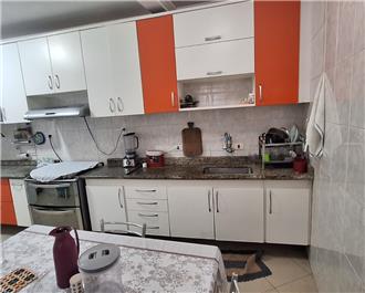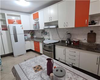 Sobrado com 3 dorms (sendo 1 suíte), 1 dorm com armário, sala, 4 banheiros, cozinha com armários, 4 vagas para carros pequenos, salão coberto em cima com quarto, lavanderia, wc, garagem com wc, churrasqueira